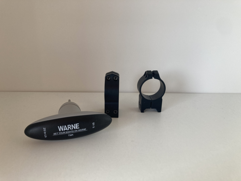 Verkaufe neuwertige Warne Weaver/Picatinny Ringe für einen Rohrdurchmesser von 30mm. Der Mitgelieferte Drehmomentschlüssel (T15) ist inklusive. Die Höhe ab der Basis gemessen beträgt ca. 13,5mm (siehe Bild 2).