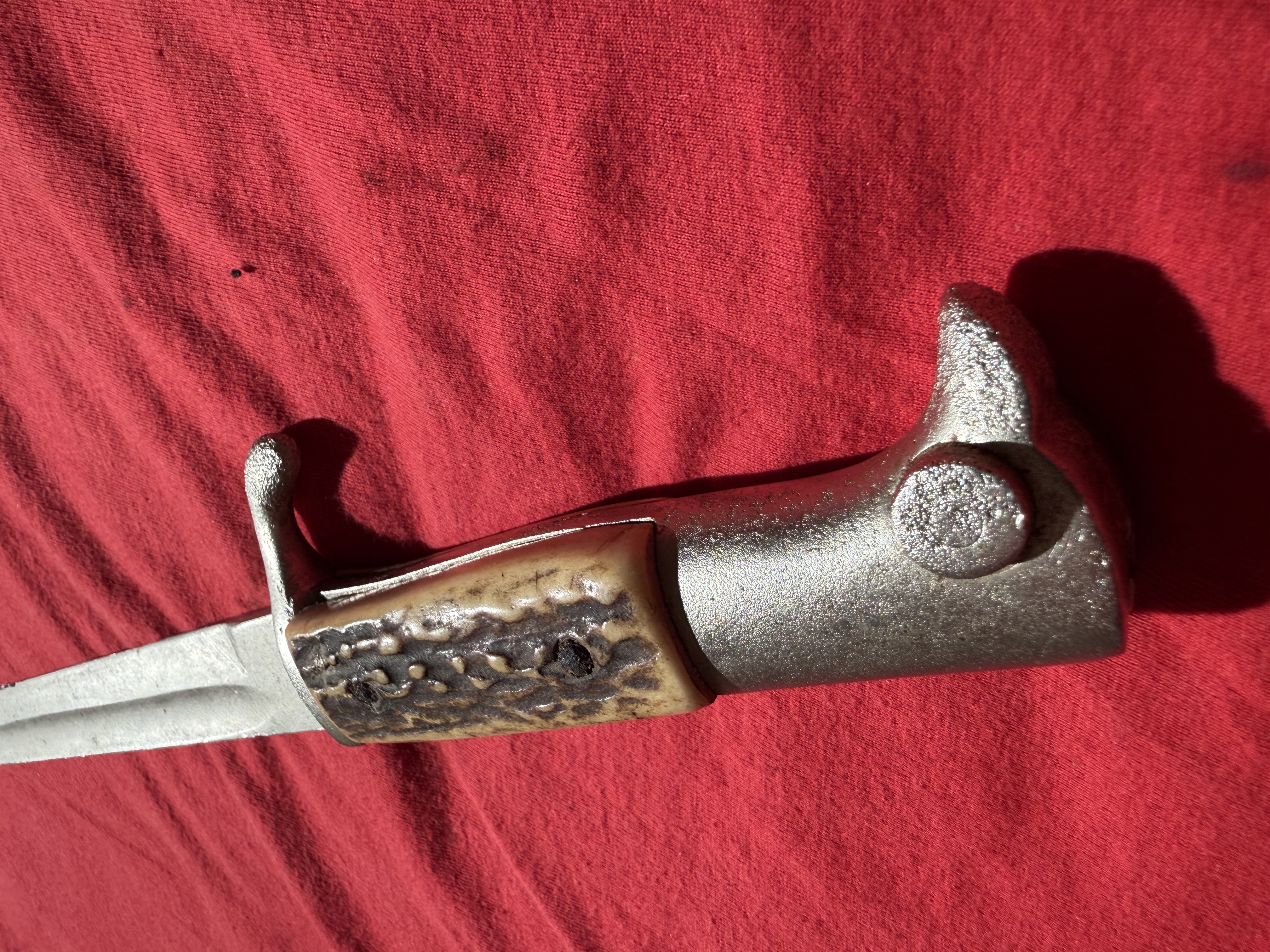 Original WK2 - Wehrmacht Extra-Seitengewehr Bajonett Carl Eickhorn Solingen mit Hirschhorngriffschalen,