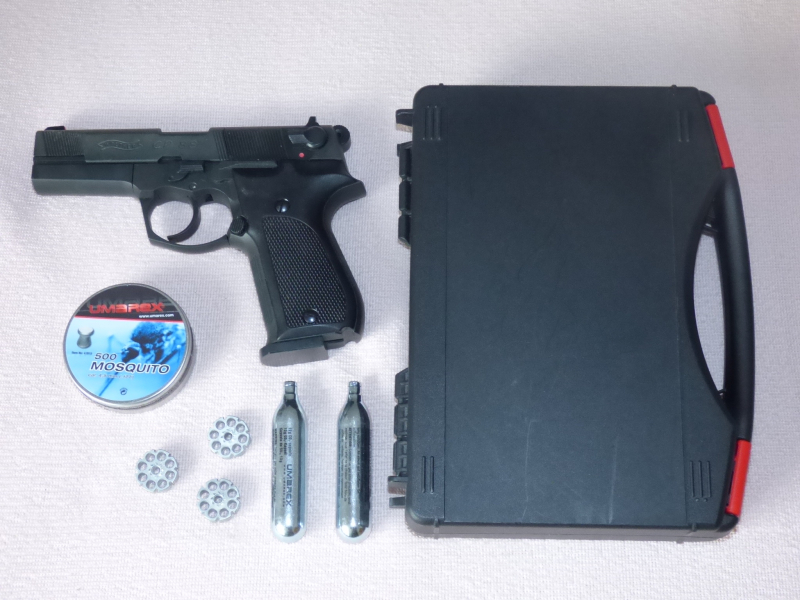 Verkaufe meine Walther CP 88 CO2 Pistole. mattschwarze Brünierung, Kaliber 4,5 mm Diabolo. Der Antrieb erfolgt mit einer 12 g CO2 Kapsel. Es kommen die 8 schüssigen Trommelmagazine zum Einsatz, die auch für eine Reihe anderer Waffen verwendbar sind. Zustand: es funktioniert alles einwandfrei wie es soll. Nur minimale Gebrauchsspuren - siehe Fotos. Das Korn habe ich -um das Zielen zu erleichtern- mit roter Leuchtfarbe markiert. Geliefert wird was auf den Fotos zu sehen ist: die CP 88, kleiner Waffenkoffer, 2 CO2 Kapseln, 3 Trommelmagazine und eine volle Dose Diabolos (noch originalverpackt und ungeöffnet). Eine Bedienungsanleitung kann auf umarex.de heruntergeladen werden. Schicke dem Käufer gerne den link dazu.Bei Bedarf können weitere Trommelmagazine, Diabolos und auch CO2 Kapseln mit dazu erworben werden.