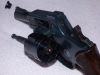Zustand: der Revolver wurde wenig geschossen aber öfter mal geführt. Die Brünierung ist am Korn und den Kanten der Kimme etwas abgewetzt. Trommelkranz und Schlagbolzensind leicht rostig. Am Rahmen links in Nähe der Trommel hat die Brünierung einen Kratzer (auf den letzten beiden Fotos gut zu erkennen). Insgesamt ist der Revolver in gepflegtem Zustand und alles funktioniert einwandfrei wie es soll.