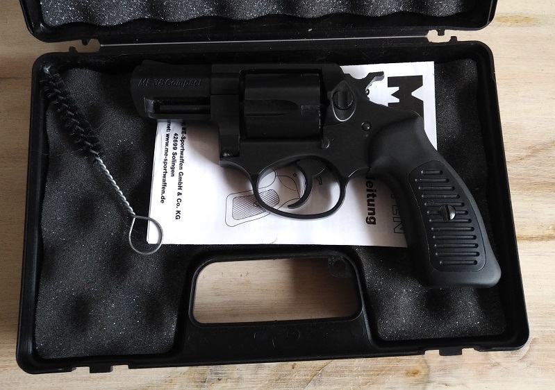 Sie bieten auf einen handlichen und führigen Verteidigungsrevolver ME 38 Compact im beliebten Kaliber 9 mm R Knall, mit der PTB 797. Beschußjahrkennung BG (2016). Technisch und optisch gelungener Verteidigungsrevolver im Design von RUGER-Revolvern, Fallsicherung, geringer Trommelspalt, Trommelbohrungen nicht zum Lauf versetzt, ein bewährtes und zuverlässiges Modelle, welches über viele Jahr gefertigt wurde, jetzt wird der Revolver zwar noch bei Händlern gelistet, ist aber scheinbar nicht mehr verfügbar/in Produktion, also zugreifen!