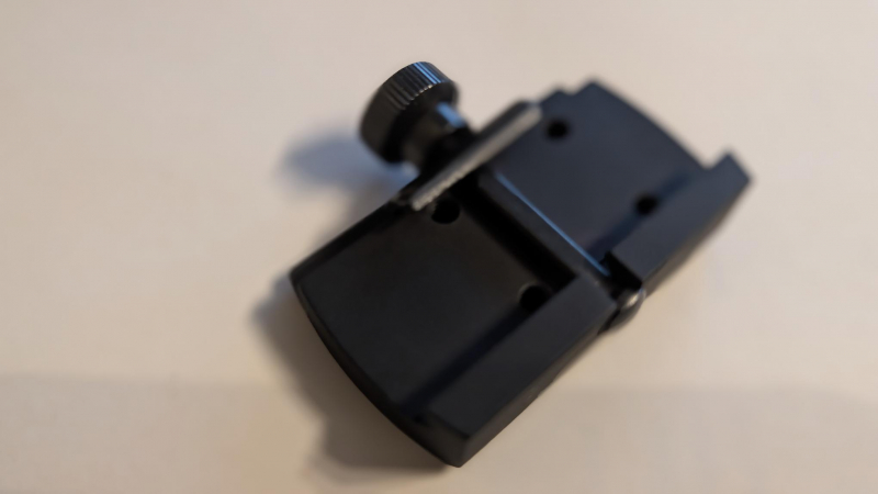 Werkzeuglose Montage: Durch die große seitliche Rändelschraube (Thumb-Screw) lässt sich die Montage schnell und sicher per Hand auf jeder MIL-STD 1913 Picatinny-Schiene fixieren.