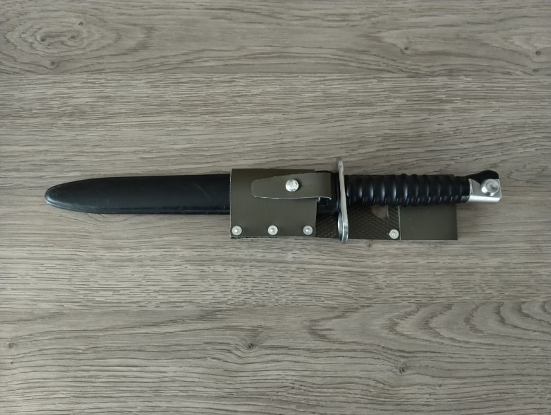 Zum Verkauf kommt ein schweizer Bajonett Modell 1957 mit alterstypischen Gebrauchsspuren der 2. Serie für das SIG Stgw. 57 inklusive Koppelschuh.