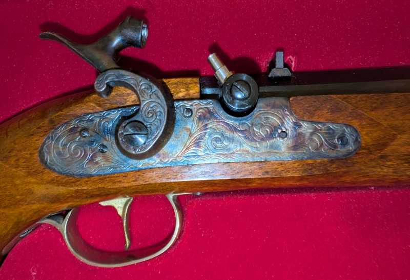 Dikar VL-Pistole, November 1982 in Spanien gefertigt (Zertifikat). Ungeschossen, Pulverraum/Lauf mit Bore-Kamera überprüft. Schatulle hat gelitten, Pistole selbst in absolut rostfreiem Bestzustand. Privatverkauf.