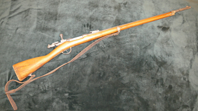 St. Etienne Mod. 1866-74, Kal. 11x59R Gras M1874, altersgemäße Gebrauchsspuren, teilweise "ordentliche" Rostnarben, Lauf innen rau, aber ohne großartige Rostnarben, Gesamtlänge 130,5cm. Die Oberfläche ist gräulich, stellenweise offensichtlich gebürstet, aber weitgehend gut erhalten. Der Putzstock fehlt leider und der Schaft war im Bereich hinter dem Abzug schon mal gebrochen. Die Waffe ist, soweit ich das erkennen kann, nummerngleich. Wenn ich einen Stempel richtig interpretiere, ist sie Baujahr 1875.