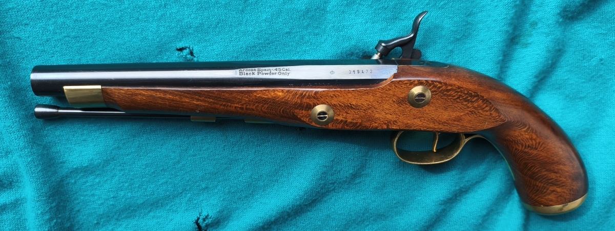 Perkussionspistole, Kal. 45 gezogen.