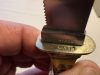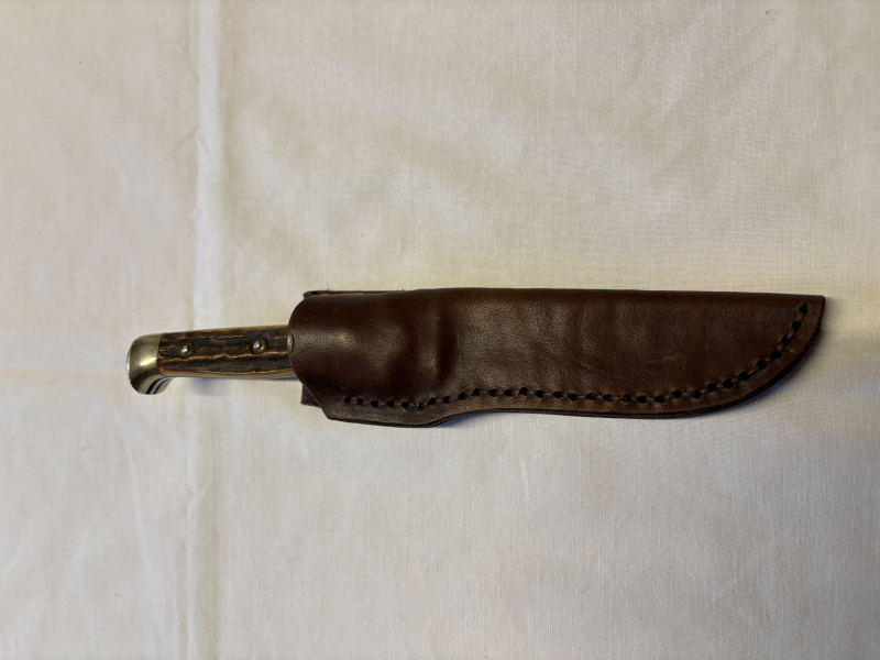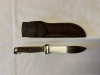 Älteres Pumamesser mit passgenauenr Lederscheide. Fundzustand , ungereinigt. Wurde wohl mal überarbeitet und beschliffen, Puma Logo auf rechter Klingenseite nur schwach erkennbar. Nr. 34873. Alles fest, nix wackelt. Köcherscheide könnte mal etwas Lederpflege vertragen, Nähte einwandfrei. Schönes authentisches Vintageteil, möglicherweise 80er Jahre. Bilder sind Bestandteil der Beschreibung.