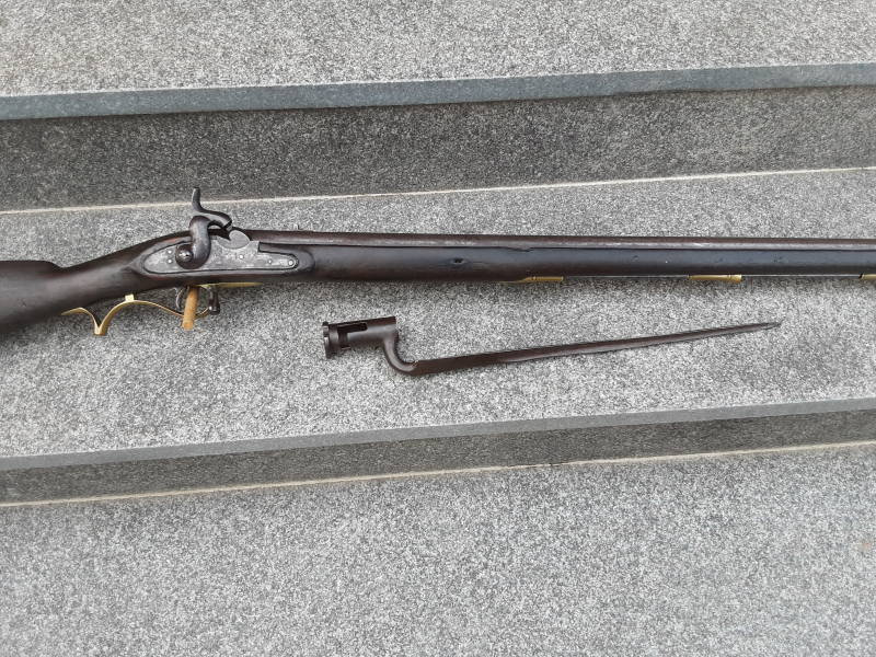 Schwere englische Muskete M1842 der " East India Company ", Schlossplatte mit stehendem Löwen, Lauf mit V und Krone