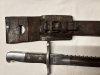 Schweizer Sägebajonett Waffenfabrik Neuhausen mit Koppelschuh, ungereinigter Fundzustand. Scheide stark Rostbefallen. Bajonett Sitzt stramm. Klinge fast vollständig blank, Säge scharf, punktuell leicht Flugrostig, noch originales Waffenfett. Drücker funktioniert einwandfrei. Bajonettlänge 61 cm. Bilder sind Bestandteil der Beschreibung.