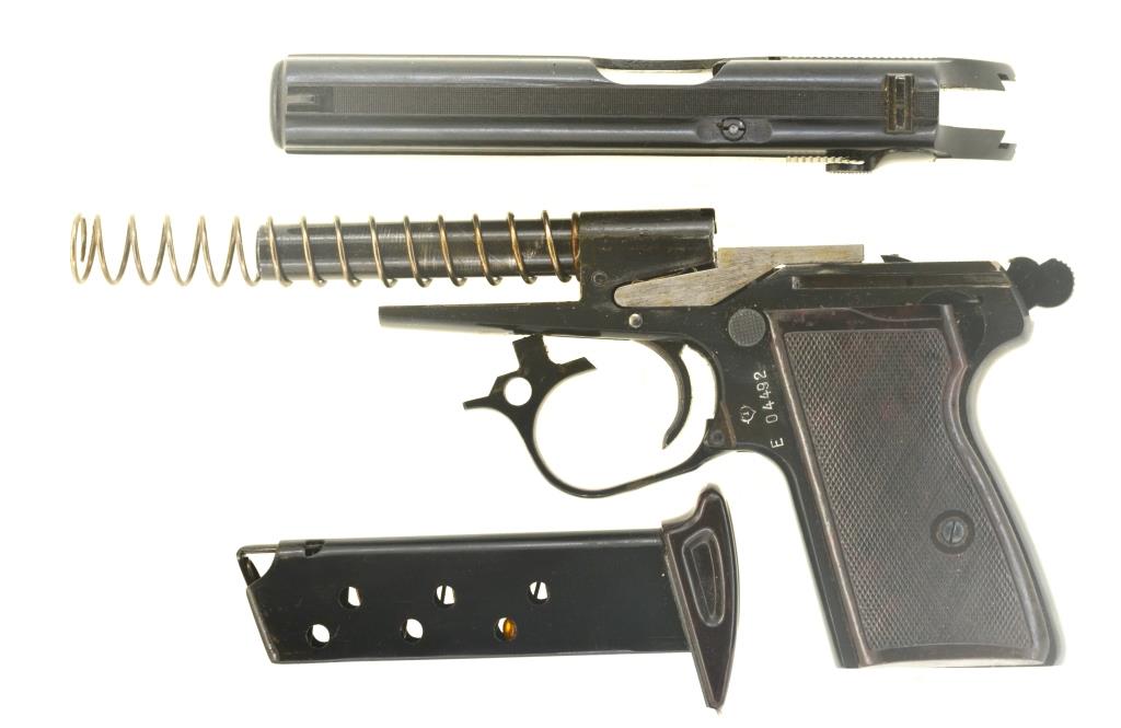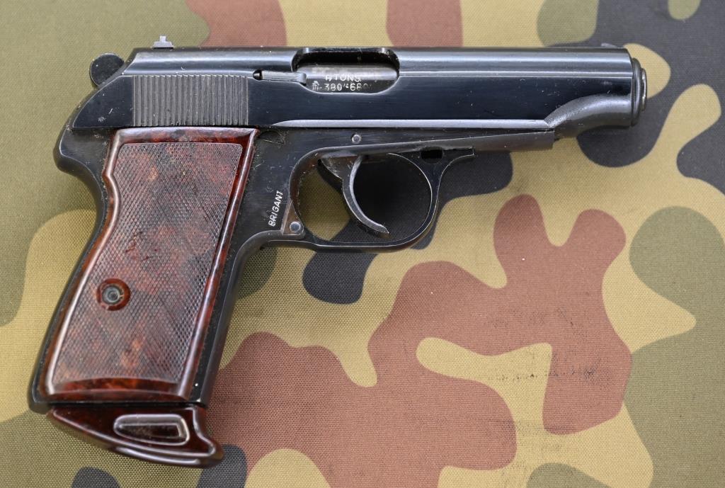 Pistole, Behördenwaffe, Taschenpistole, Polizeipistole, Selbstladepistole, Ordonnanzwaffe, Dienstwaffe, Ganzstahlwaffe im Stil der Walther PP, Polizeiwaffe, Double-Action-Pistole mit außenliegendem Hahn, Fangschusswaffe, Sammlerwaffe: