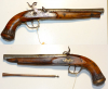 Perkussionspistole, aptiert von Steinschloss, Lauflänge 21,3 cm, Gesamtlänge 34,4 cm, Kaliber 15mm, Lauf unten graviert "Tort F C. Paris", Kolben mit zeitgenössischer Reparatur, Altersspuren aber noch als gut zu bezeichnen, technisch in Ordnung