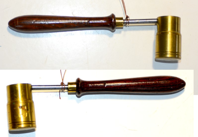Verstellbares Pulvermaß , 30 - 40 Gramm, Maß aus Messing, Holzgriff, 19. Jahrhundert, sehr guter Zustand