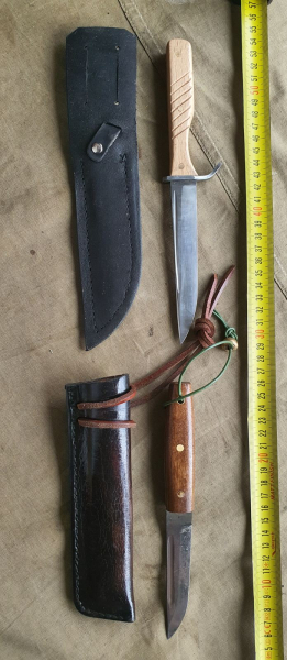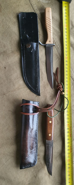 Beide Messer werden mit passenden Lederscheiden aus strapazierfähigem Leder geliefert.