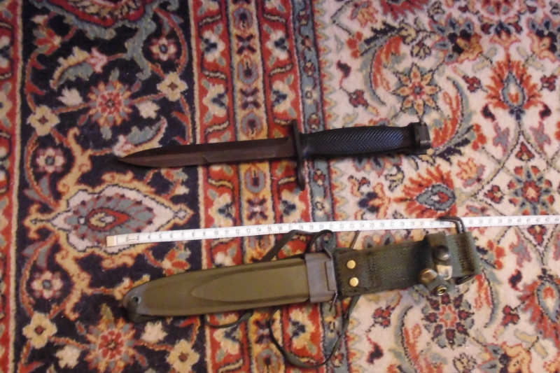 Löse einen Teil meiner Blankwaffensammlung auf. Biete hier ein US M5 A1Garand Bajonett an, mit Bakelitscheide an. Das Bajonett wird als "mit leichten Gebrauchsspuren" eingestellt, da ich es schon länger in meinem Besitz habe und kein Händler bin. Verkauf nur an Personen ab 18 Jahren, daher Altersnachweis erforderlich. Der Versand erfolgt mit DHL versichert und nur innerhalb Deutschlands. Da es sich hier um einen Privatverkauf handelt, keine Garantie oder Rücknahme. Eine Abholung nach Absprache wäre möglich.