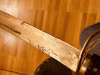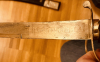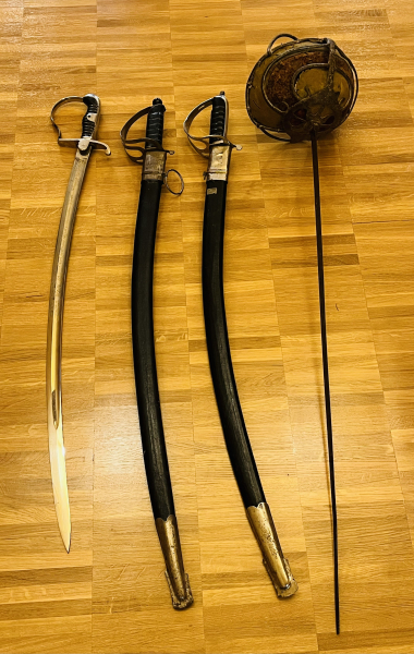 Ein antiker Preußen Artillerie-Säbel, beidseitig fein verzierte Klinge „1. Nass. Feldartill. Regt. Nr. 27 (Oranien) – steht zumindest so auf der Klinge. Länge ca. 91 cm. Leider ohne Scheide. Repro? Sieht irgendwie „billig“ aus und Vernickelung ist stellenweise abgeplatzt, sehr leicht, kenne mich mit den Teilen aber nicht aus, vielleicht muss das so sein, siehe Bilder.