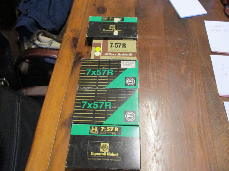 Sie bieten auf insgesamt 80 Schuss im Kaliber 7x57 R , bestehend aus 20 Schuss RWS , 19 Schuss RWS , 8 Schuss Geco , 13 Schuss S&B , 20 Schuss RWS . Die Munition ist nicht Sortenrein , es sind meine Altbestände die nicht mehr benötigt werden .