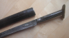 Die überarbeitete dunkelbraune originale Holzscheide mit eisernem Mundblech.