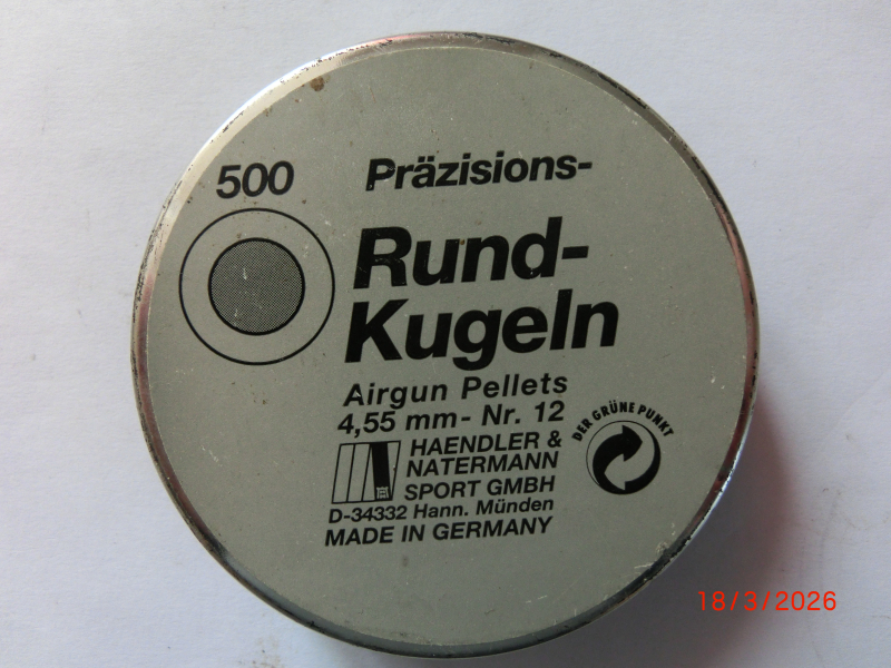 Biete hier eine Dose Präzisions-Rundkugeln Nr.12 (4,55mm ) Haendler+Natermann Hann- Münden 500 Stück ,die Dose ist original verschlossen, für Sammler oder Schützen . Verkauf nur in Deutschland !!!!!!!! Kein Verkauf ins Ausland!!!!! Bezahlung bitte per Paypal !!!!!!!