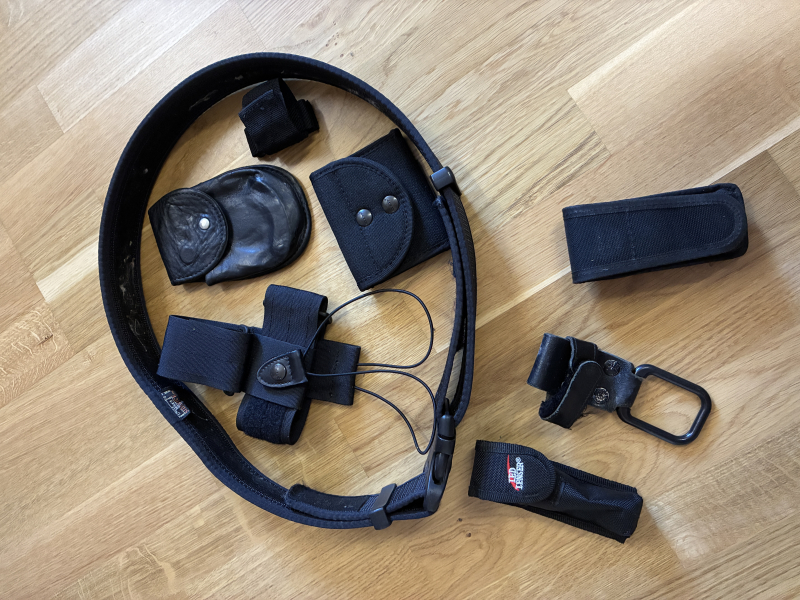 Mit dabei ist ein Tasche für eine Taschenlampe, Handschellenholster, Magazinholster, Handschuhhalterung, Funkgeräteholster, Einweghandschuhtaschenhalterung und ein Tonfahalter.