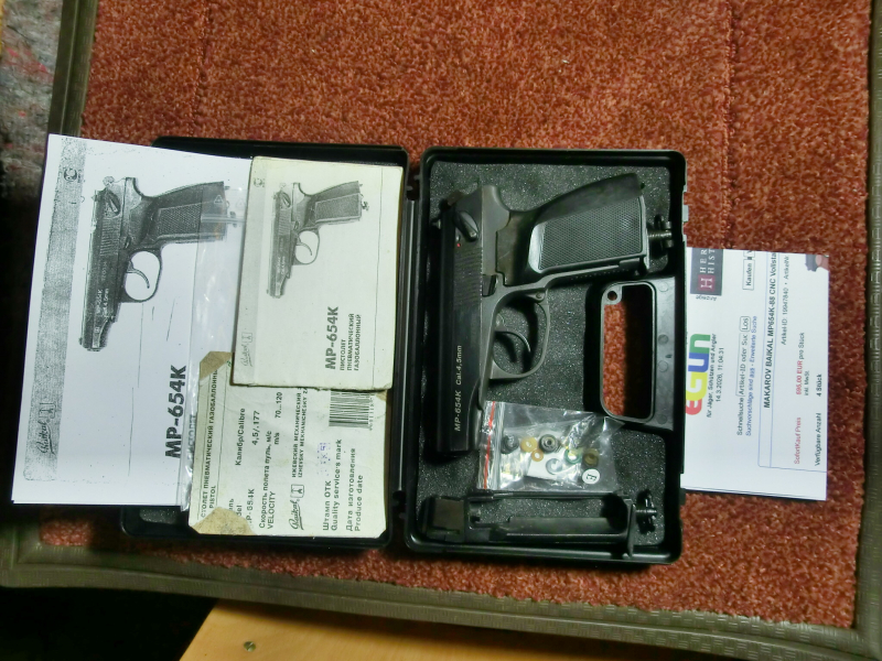 Hier wird --im Kundenauftrage-  eine seltene CO-2 Pistole  Makarov   (Russische  Ganzstahl-Fertigung ) angeboten. Nachbau der  Original  Russischen Makarov Pistole, die bei allen Warschauer-Pakt-Staaten als Dienst-Pistole geführt wurde. Sehr guter  Zustand.  Wenig  Gebrauchtspuren.Mit  allen  Papieren  (Russ.)  und  Koffer.  Sie Fotos sind Bestandteil des Angebots.   Zu  95%  aus Teilen der Original Makarov Pistole  hergestellt.  Mit  2  Ganzstahl-Magazine.  Diese  Pistole  ist  kein UMAREX  Nachbau  aus Zinkdruckguß.Diese angebotene  Pistole  wird  z.Zt., sofern noch lieferbar,  mit nur einem Magazin  für  595€  bei EGUN  angeboten.  Hier ist zwar ein Beutel mit Dichtungen  dabei, aber leider nicht die passenden für die CO-2  Abdichtung. Die sind m.E.  aber  im Internet  lieferbar. Sonst  ist die "Trocken-Funktion"  OK. Weil diese  2  Magazin-Dichtungen  fehlen , wird diese Pistole  als  "defekt"  angeboten . Da im Kundenauftrag:  Kein Rückgaberecht  bzw.  Garantie.  Weitere  Lieferungen  aus Russland  sind nicht möglich  wg.  dem  Kriegszustand.  Bei  SOFORTKAUF  gibt  es 10  CO-2 Patronen  gratis  dazu  !!!