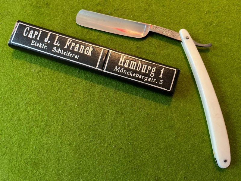 das Messer ist offensichtlich sehr alt, und ich würde dringend abraten, es für seinen ursprünglichen Zweck zu verwenden. Vorsicht ist aber auch bei damit zu hantieren geboten! Das Messer ist immer noch sehr scharf, diese Teile sind sehr gefährlich und sofern ich weiß dürfen nur privat verwendet werden (nicht beim Frisör). Kann als Sammelobjekt aber ein Stück Geschichte sein, und was interessantes für die Vitrine.