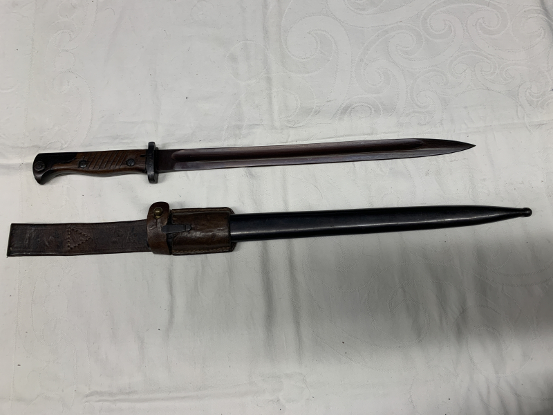 Bajonett Jugoslawien, mit Koppelschuh. Das Bajonett wurde in Jugoslawien aus einem 98 / 05 umgearbeitet. Die Klinge wurde auf die neue Form umgeschliffen. Der Drücker funktioniert. Bajonett Gesamtlänge, 49 cm, Klingenlänge 36 cm. Beim Koppelschuh sind die Nähte fest und nichts ist nachgenäht. Privatverkauf, keine Garantie oder Rücknahme. Das Bajonett und der Koppelschuh sind in einem guten gebrauchten Zustand.