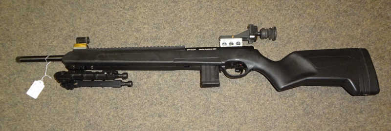 Kurze Rep.Büchse mit Kunstoffschaft. Kniegelenk-Verschluss - eine innovative Konstruktion von den Österreichern. Das Nachfolgemodell(?) wird heute auf der ISSC Homepage als "Scout Ultimate" vermarktet. Rein optisch lassen sich da keine Unterschiede feststellen.