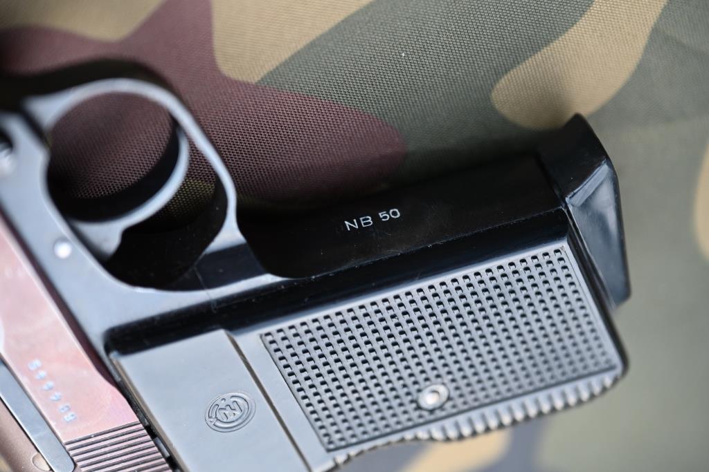 Diese Pistole diente beim National Security Corps und trägt daher diesen Abnahmestempel von 1950 „NB 50“.