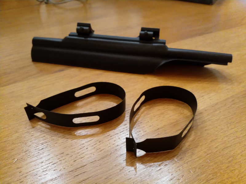 Dies ist ein sehr seltenes Modell (erstes Modell) mit Federstahlbändern, das für das OIP-Zielfernrohr (25,4 mm Rohrdurchmesser) gefertigt wurde.