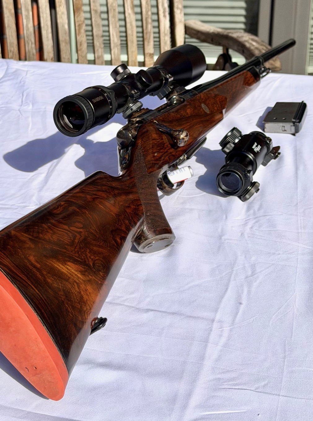 Das Zielfernohr Swarovski Habicht 3-12x50 (natürlich Absehen 1) ist nicht Bestandteil der Auktion, ebenso wenig wie Ersatzmagazin oder Leuchtpunkt mit Montage.