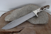 Neuwertiges Messer, original PUMA Longhorn mit Hirschhorngriff. Fulltang. Aus 440-C Stahl. 57 bis 59 HRC, Klingenlänge: 245 mm, Klingenstärke: 5 mm, Backen: Neusilber, Scheide: robustes Sattelleder.