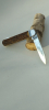 Aus meiner Sammlung: verkaufe ein Jagdmesser mit Hirschhorn Griffschalen der Fa. OTHELLO, älteres Modell, ca. 40-er Jahre. Eine Klinge, in leicht gebrauchtem Zustand, Klinge leicht beschliffen, aber keine großen Abnutzungen, s. Bilder. Gesamtlänge 19,8 cm, Klingenlänge 8,5 cm. Privatverkauf, keine Gewähr oder Garantie. Versand DE 8 €, Rest EU auf Anfrage.