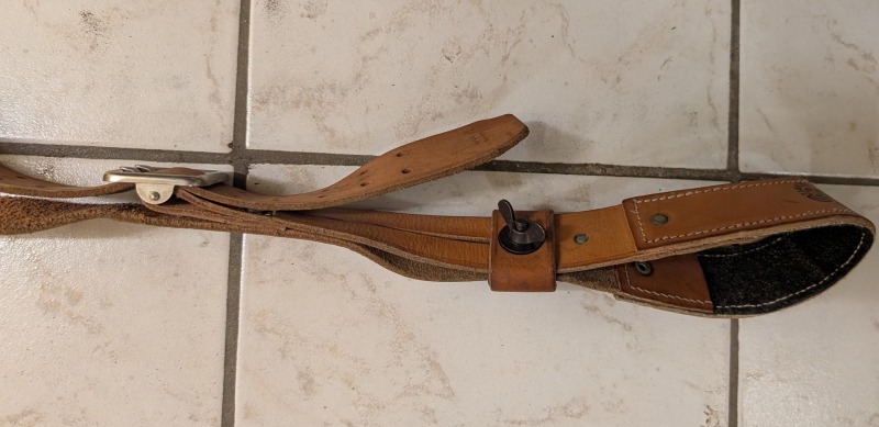 Hier biete ich einen Schießriemen aus Leder. Es ist zwar eine Einhakmöglichkeit vorhanden, leider nur nicht der Handstop.