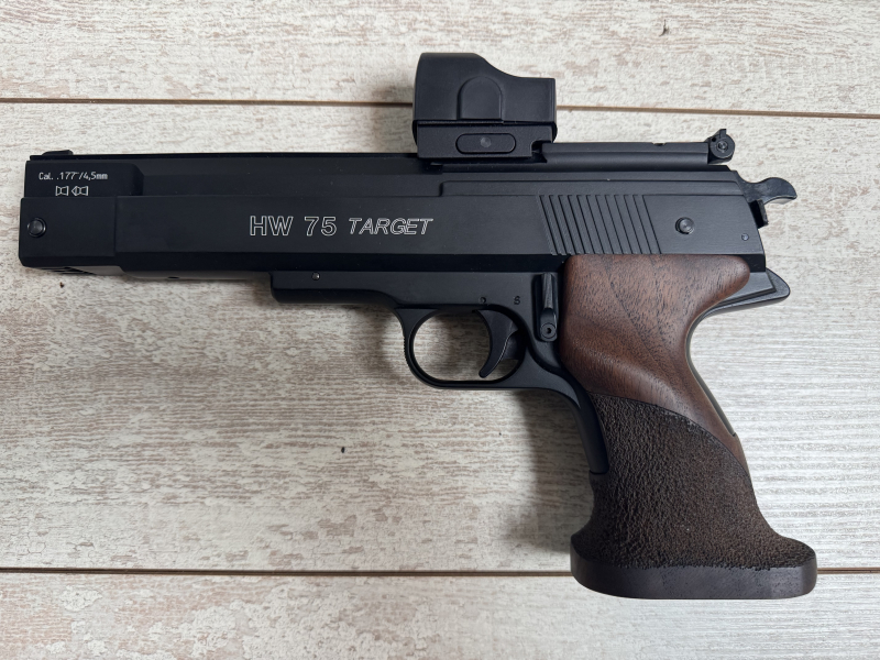 nur hier bekommen Sie exklusiv die beliebte Luftpistole HW 75 mit eingearbeiteter, kurzer Weaver- Schiene, als Sattel für ein Red Dot (Leuchtpunktvisier). Daran passen bestimmte Modelle der Marken UTG, Ritter, Hawke oder Docter. Allerdings zum Teil nur nach vorheriger Anpassung durch mich.