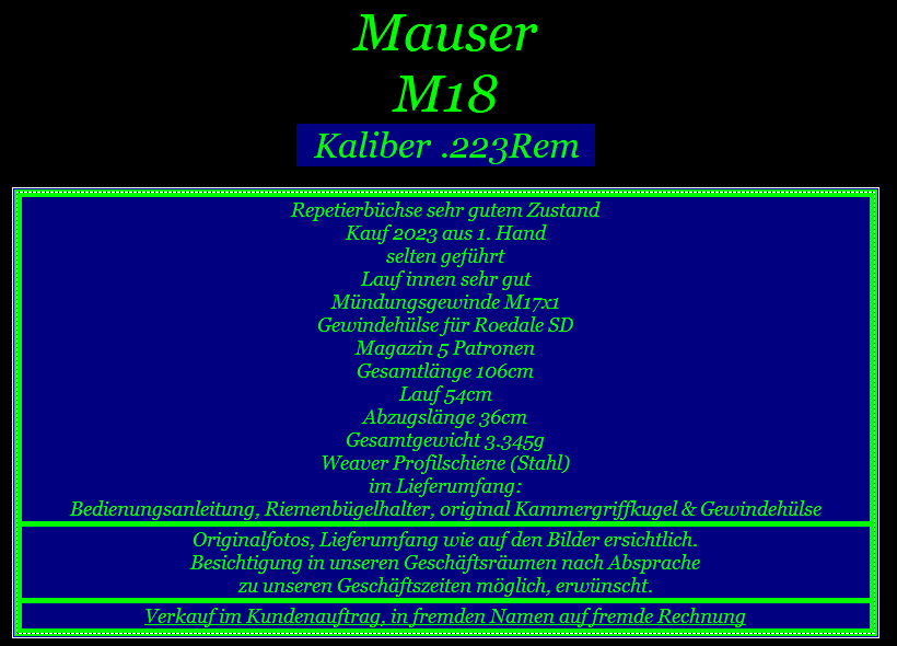Versand ins Ausland möglich, anfallende Kosten & Gebühren trägt Käufer. Anbieter dieser Auktion: Waffen Lachenmaier GbR, Entengasse 5, 76275 Ettlingen