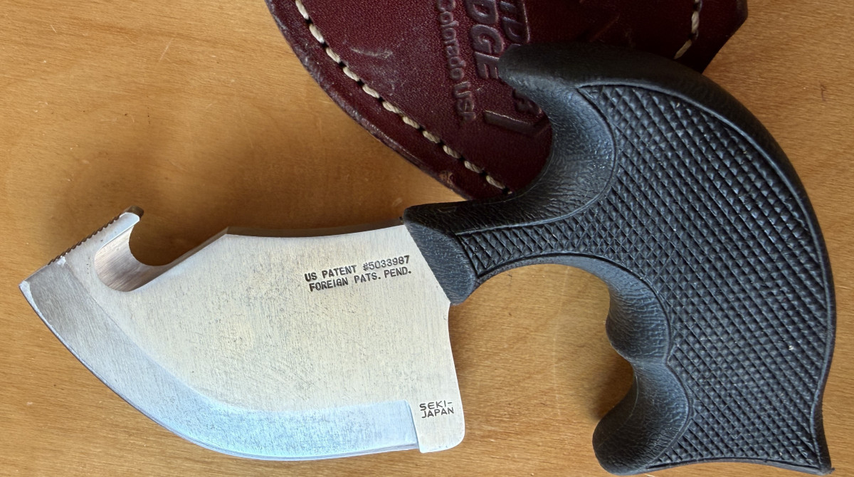 Die bauchige Klinge ist nicht nur zum Aufschärfen geeignet, man kann das Messer ebenfalls zur Unterstützung beim aus der Decke schlagen benutzen.