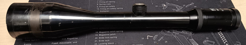 Gebraucht, deutliche Gebrauchsspuren (starke Lackabnutzung vorne am Objektiv, Kratzer am Gehäuse, leichte Delle am Gehäusetubus). Optik klar. Funktion geprüft, Verstellung leichtgängig.