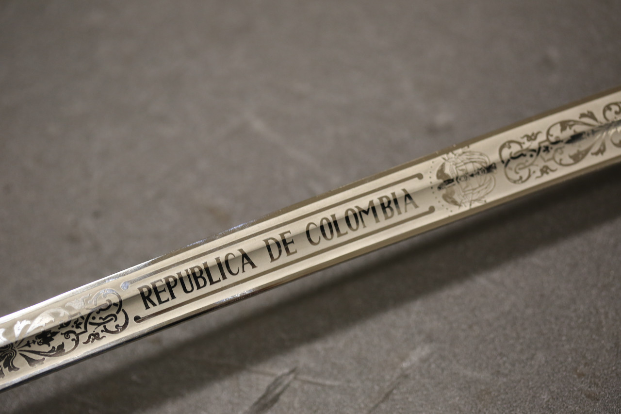 The blade is etched on both sides and bears the inscriptions “Republica de Colombia”