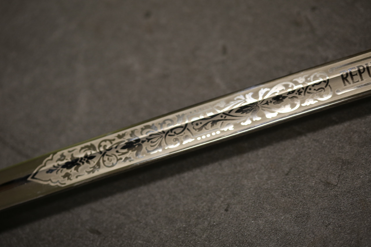 WKC describes that model as having an etched/decorated blade and an ornate hilt assembly. :contentReference[oaicite:2]{index=2}