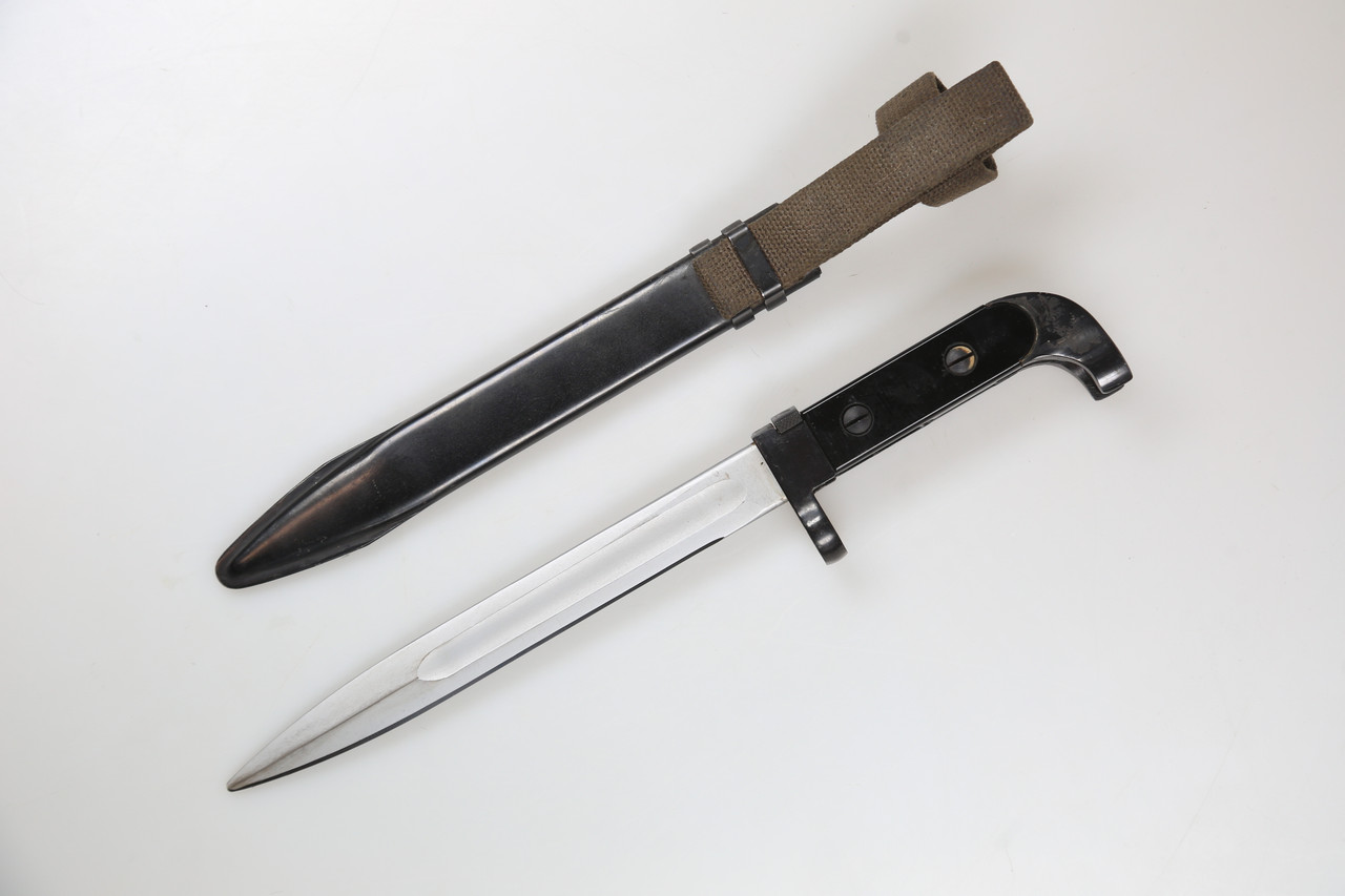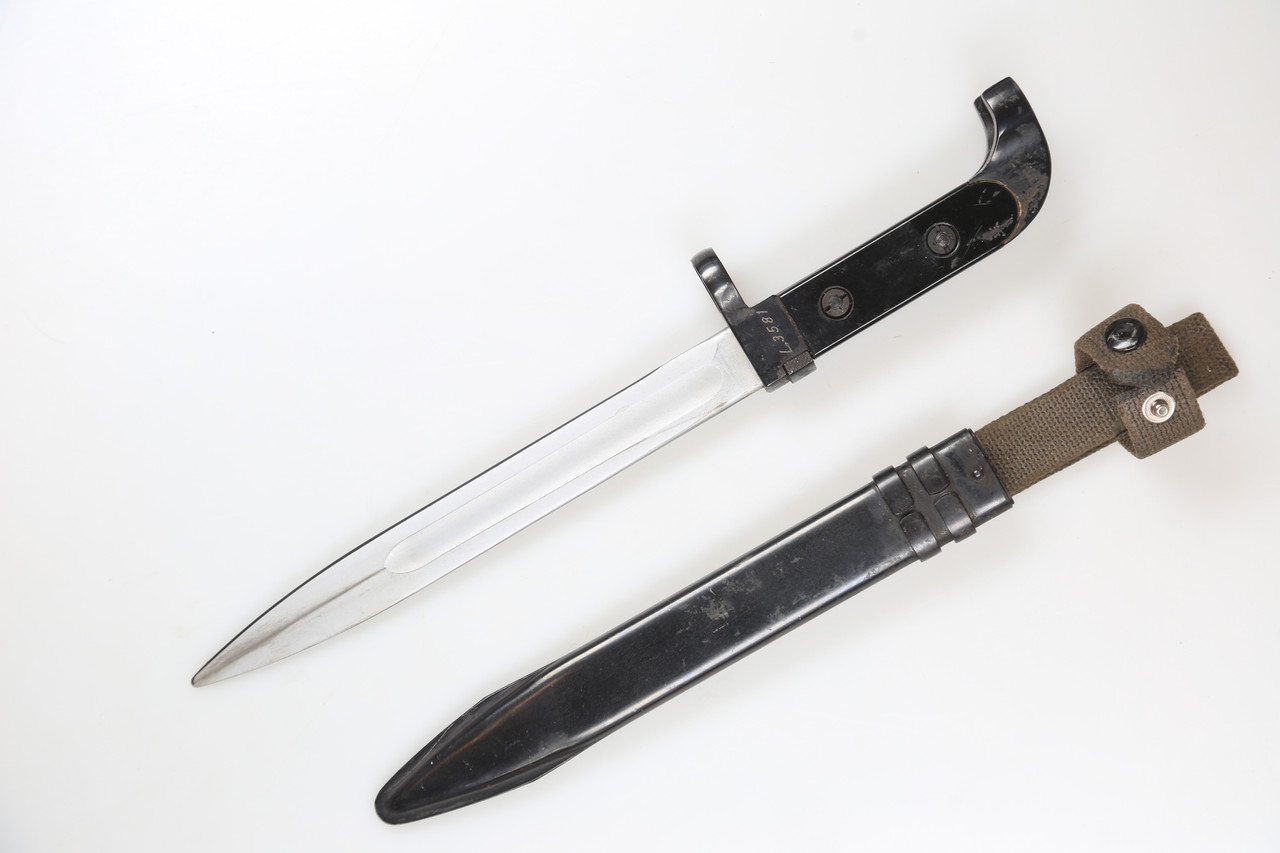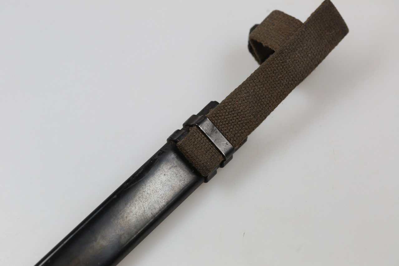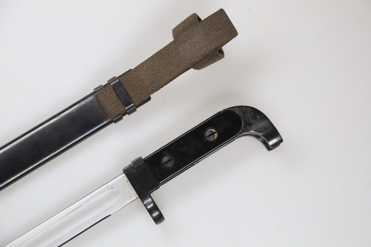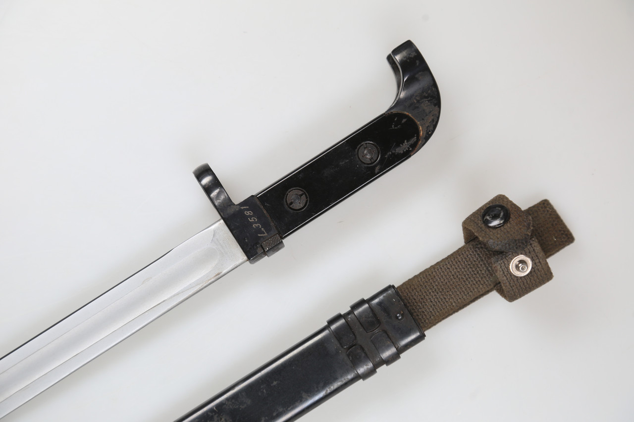 This bayonet is offered strictly as a historical collectible. It shows normal age and handling wear. Please study the photos carefully for details of the blade, grip, scabbard, numbering and overall condition.