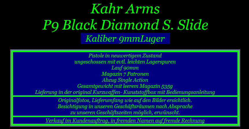 Kahr Arms P9 Black Diamond S.Slide Kaliber 9mmLuger