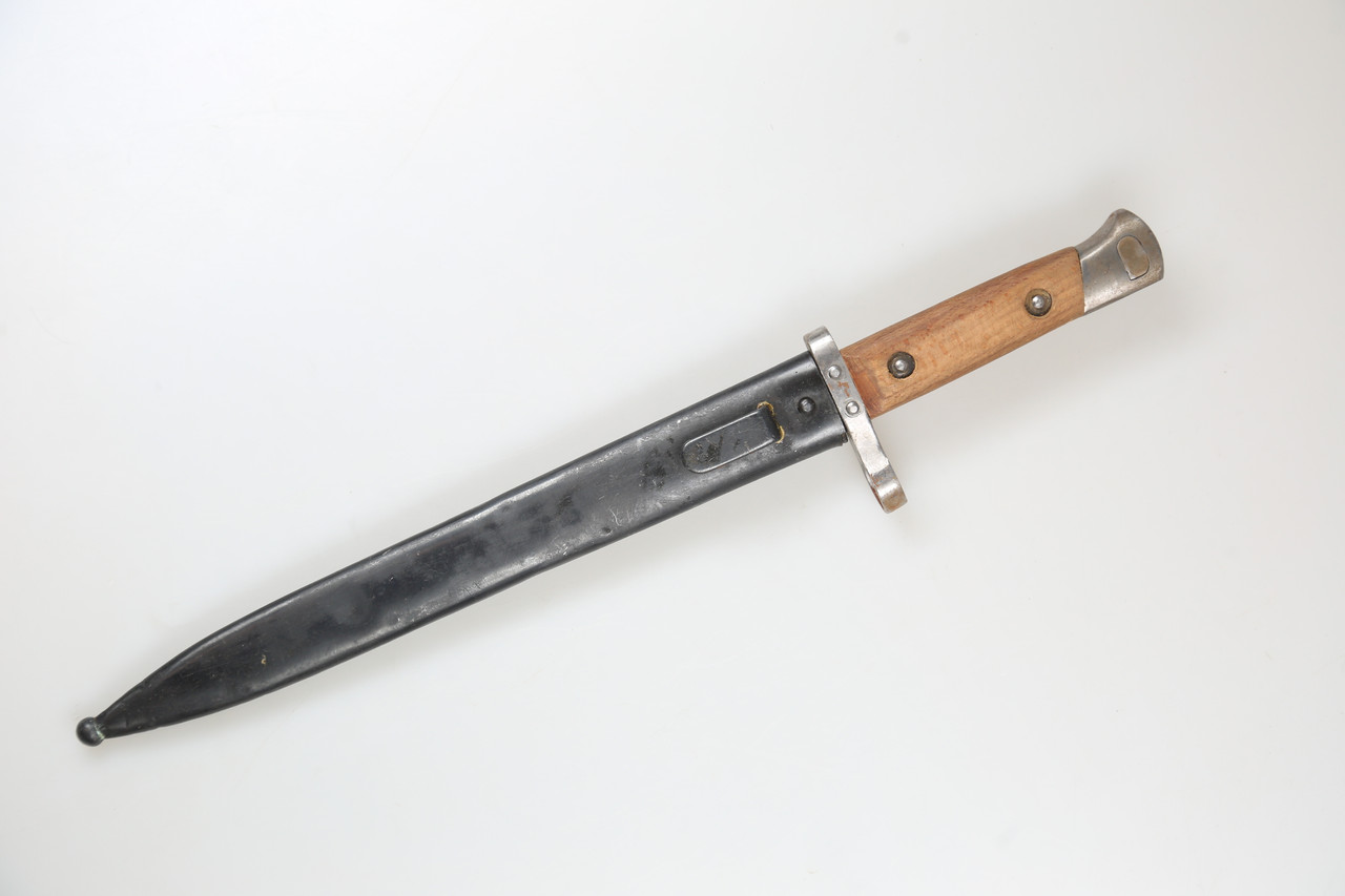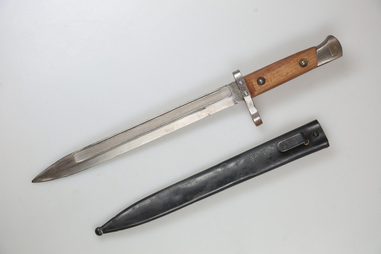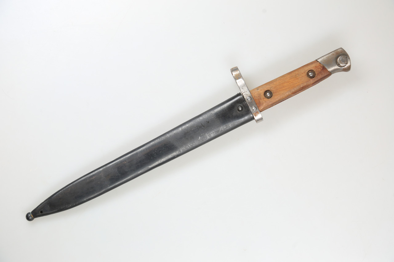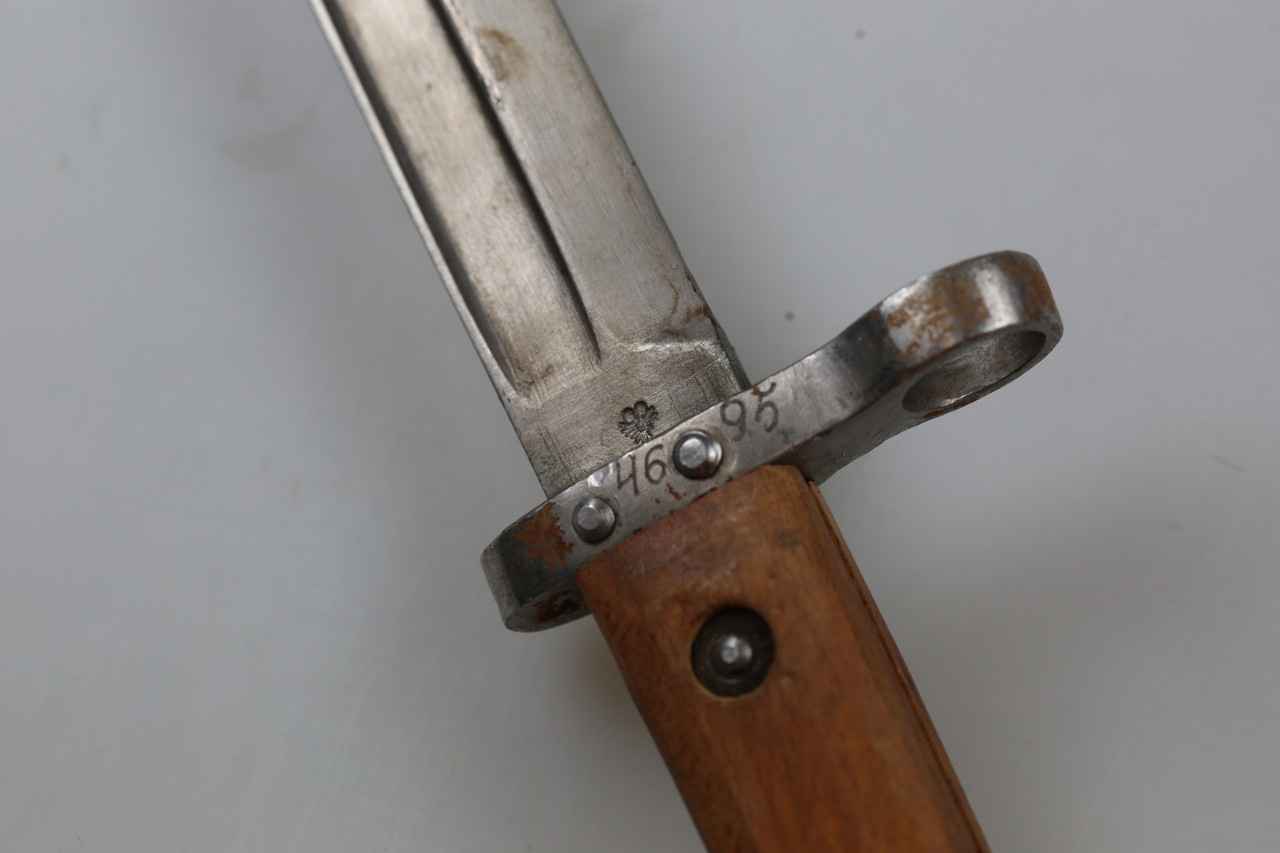 I am offering a Mannlicher bayonet M1895 for the Steyr M95 rifle. It is a classic bayonet in the well-known pattern with matching scabbard. The piece is numbered 4695.