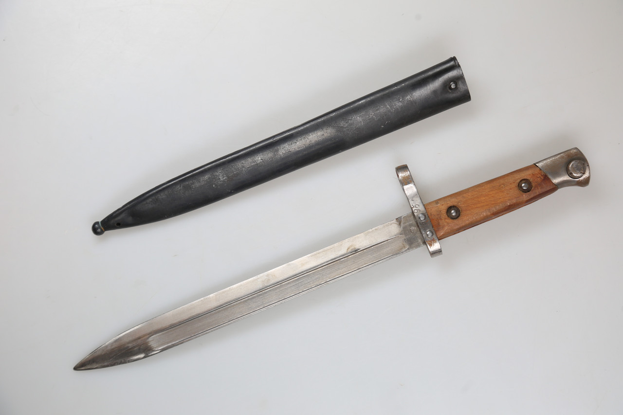 Suchbegriffe: Mannlicher Seitengewehr M1895, Steyr M95 Bajonett, Mannlicher bayonet M1895, Steyr M95 rifle bayonet, Seitengewehr mit Scheide, Österreich Ungarn Bajonett, Nummer 4695