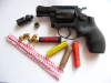 Qualität und mit vielen Stahlteilen versehen. Zb. Trommel, Hahn, Abzug usw. Der Revolver hat Griffe von Hogue drauf. Alles was auf den Bildern zu sehen ist wird verkauft.