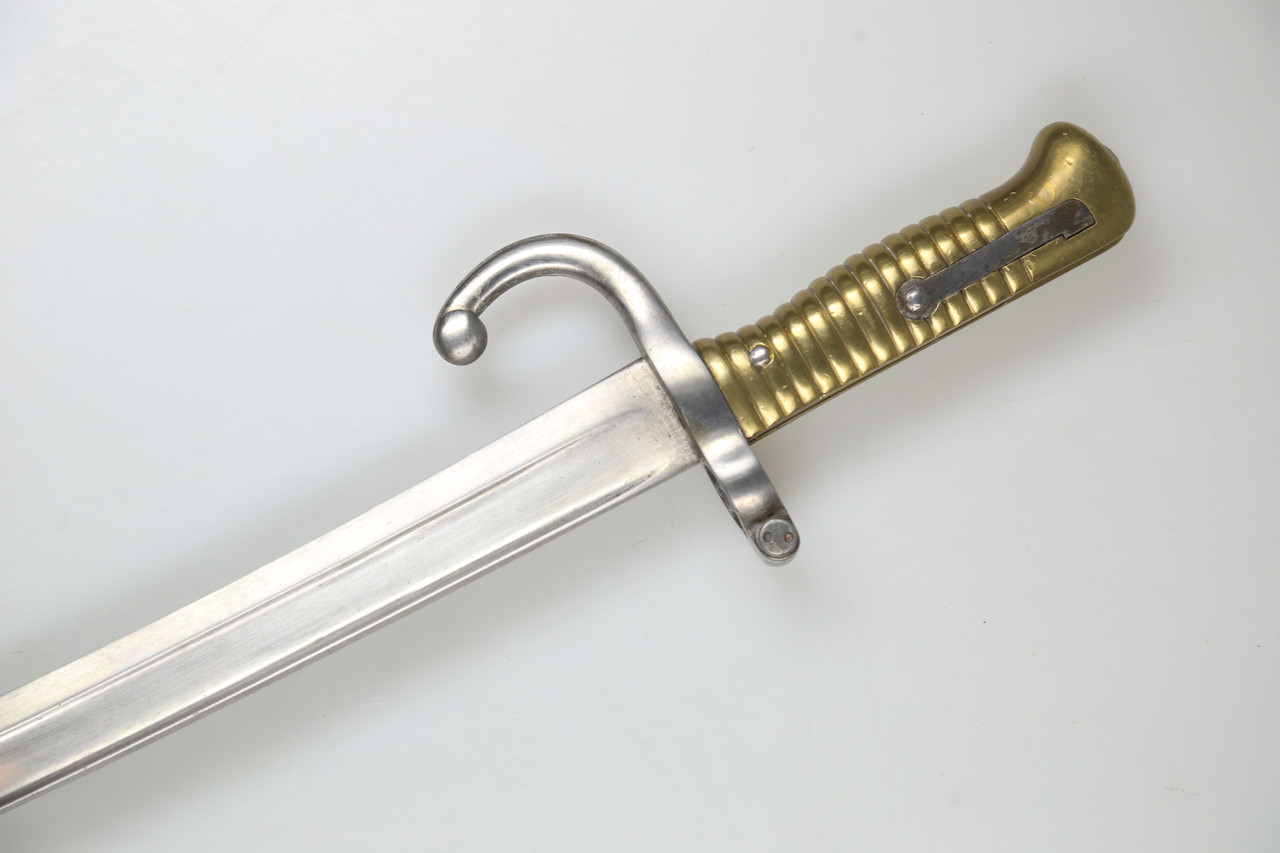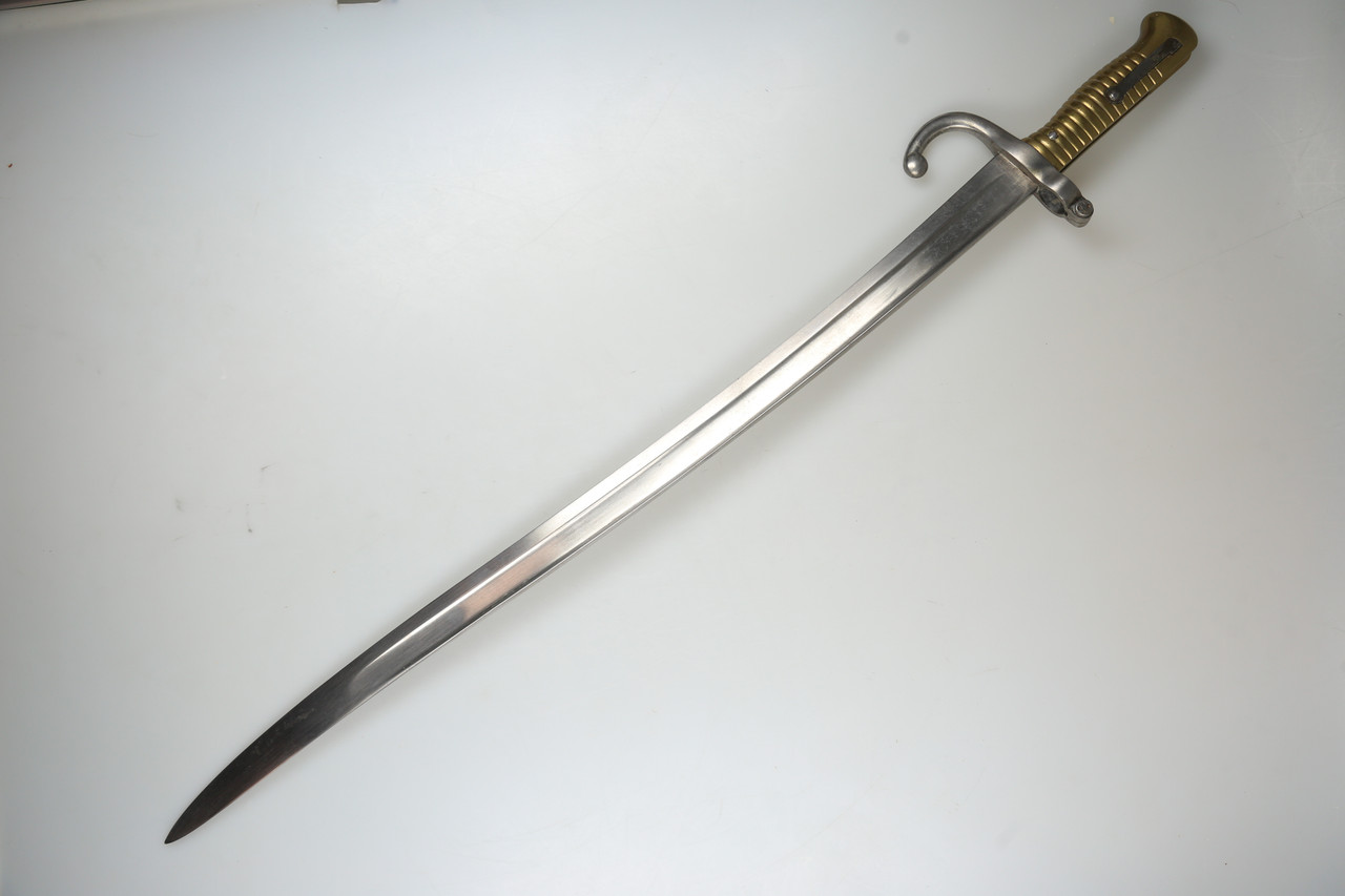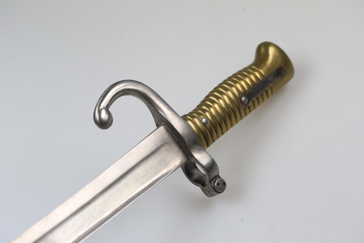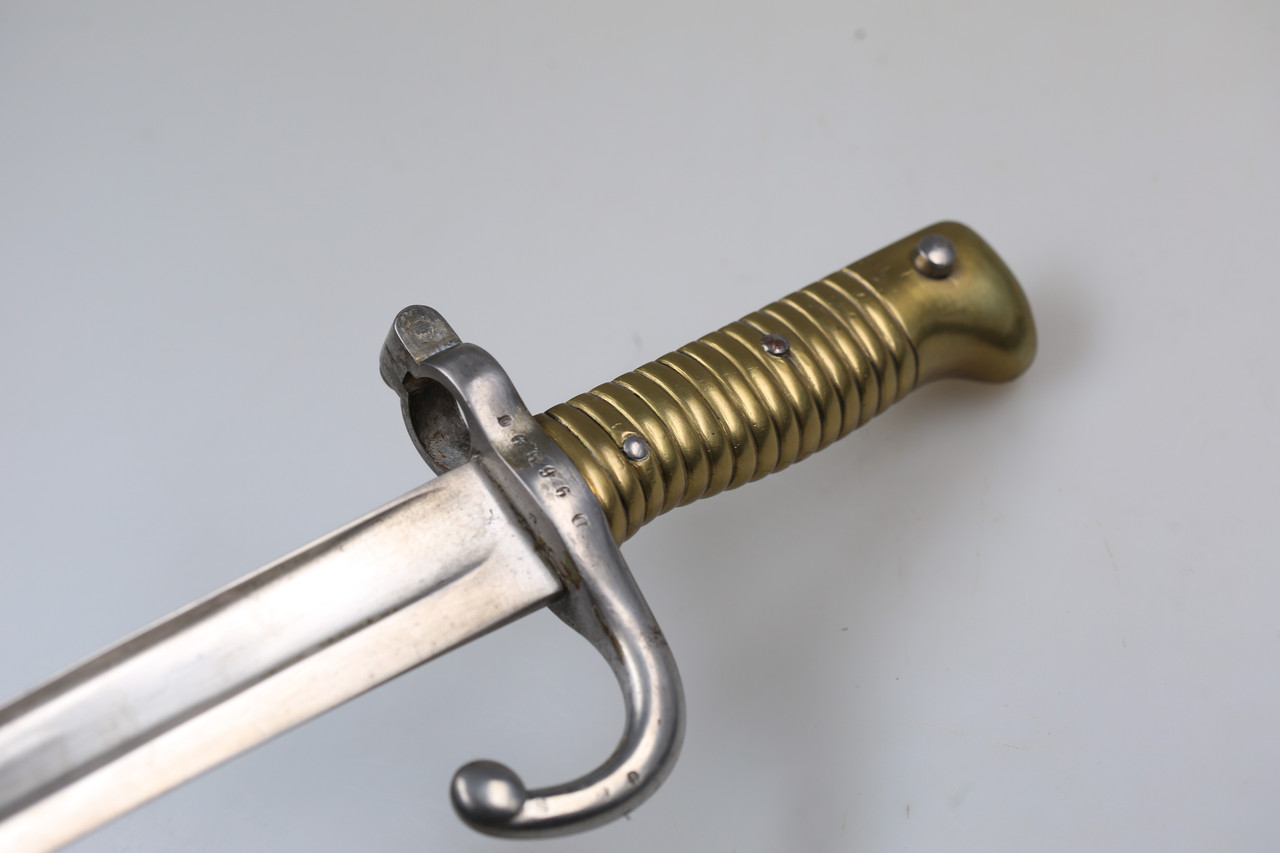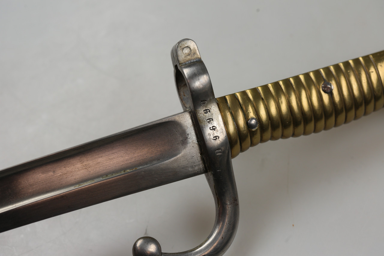 I am offering a French M1866 sabre bayonet. The piece features an engraved blade and is offered without scabbard.