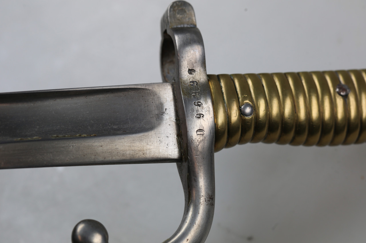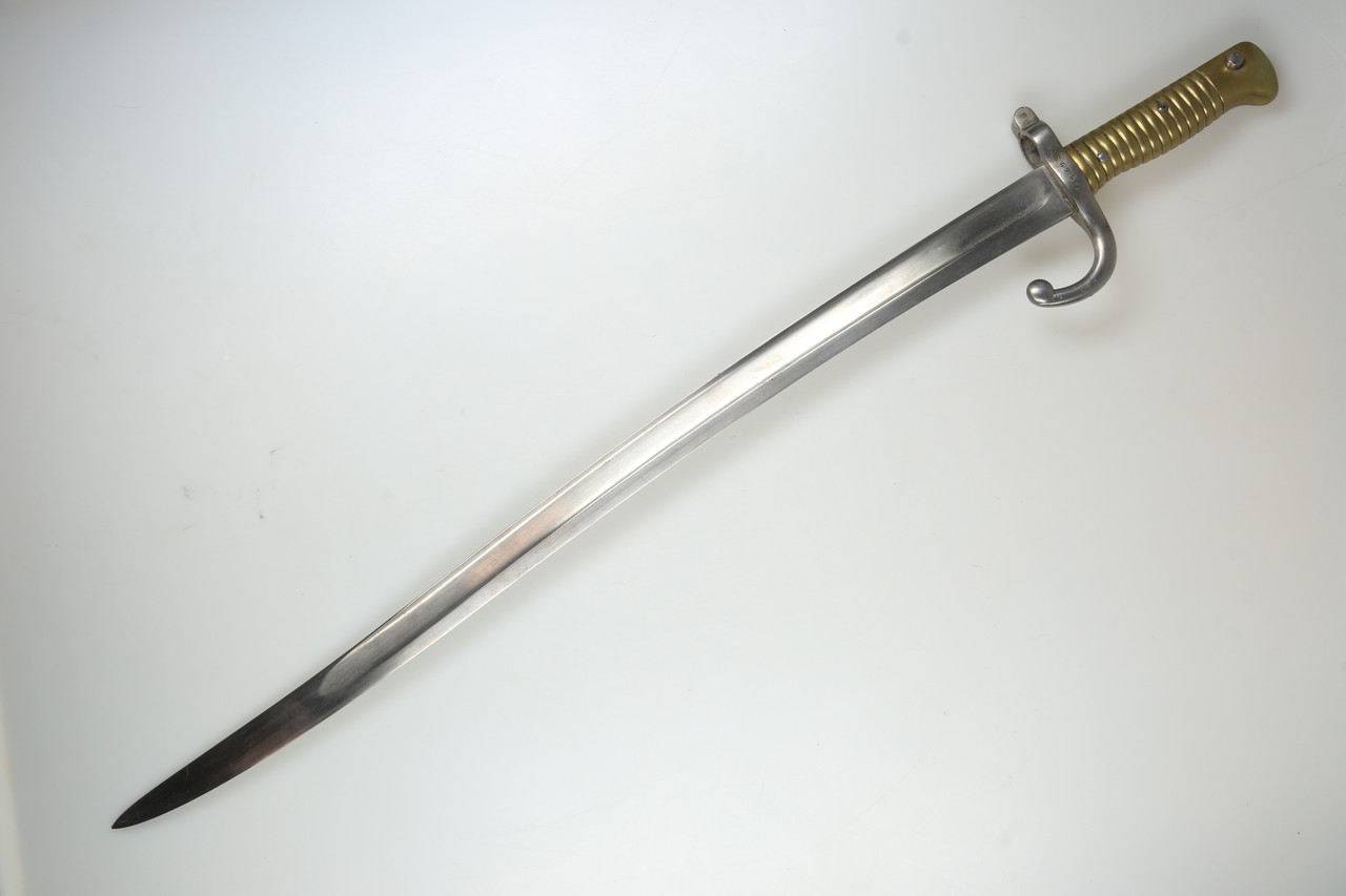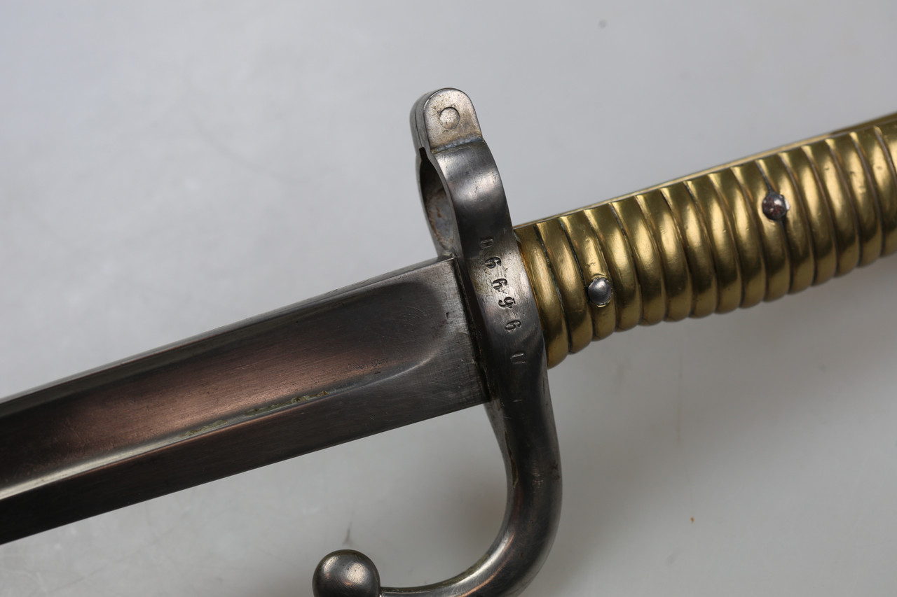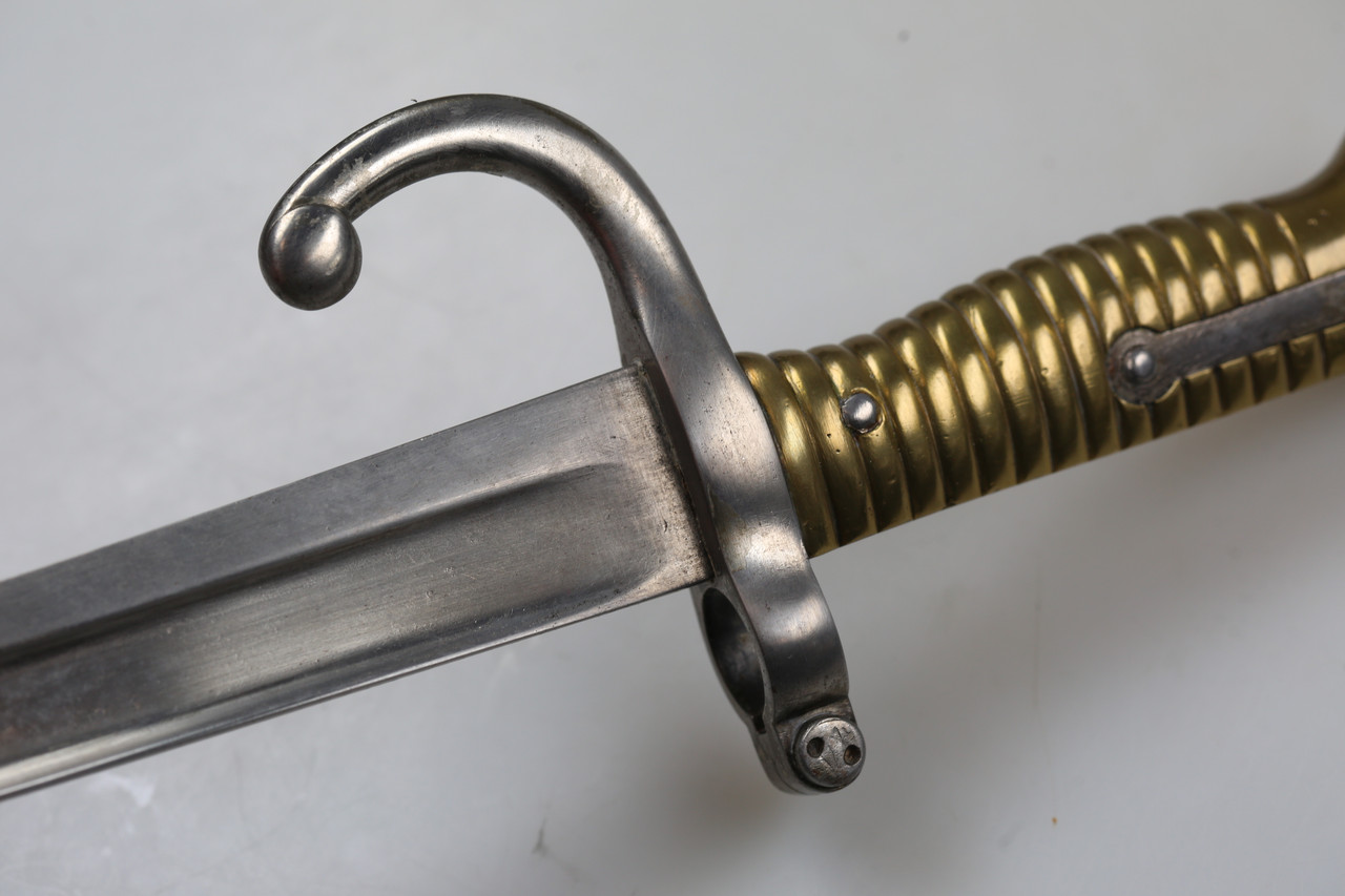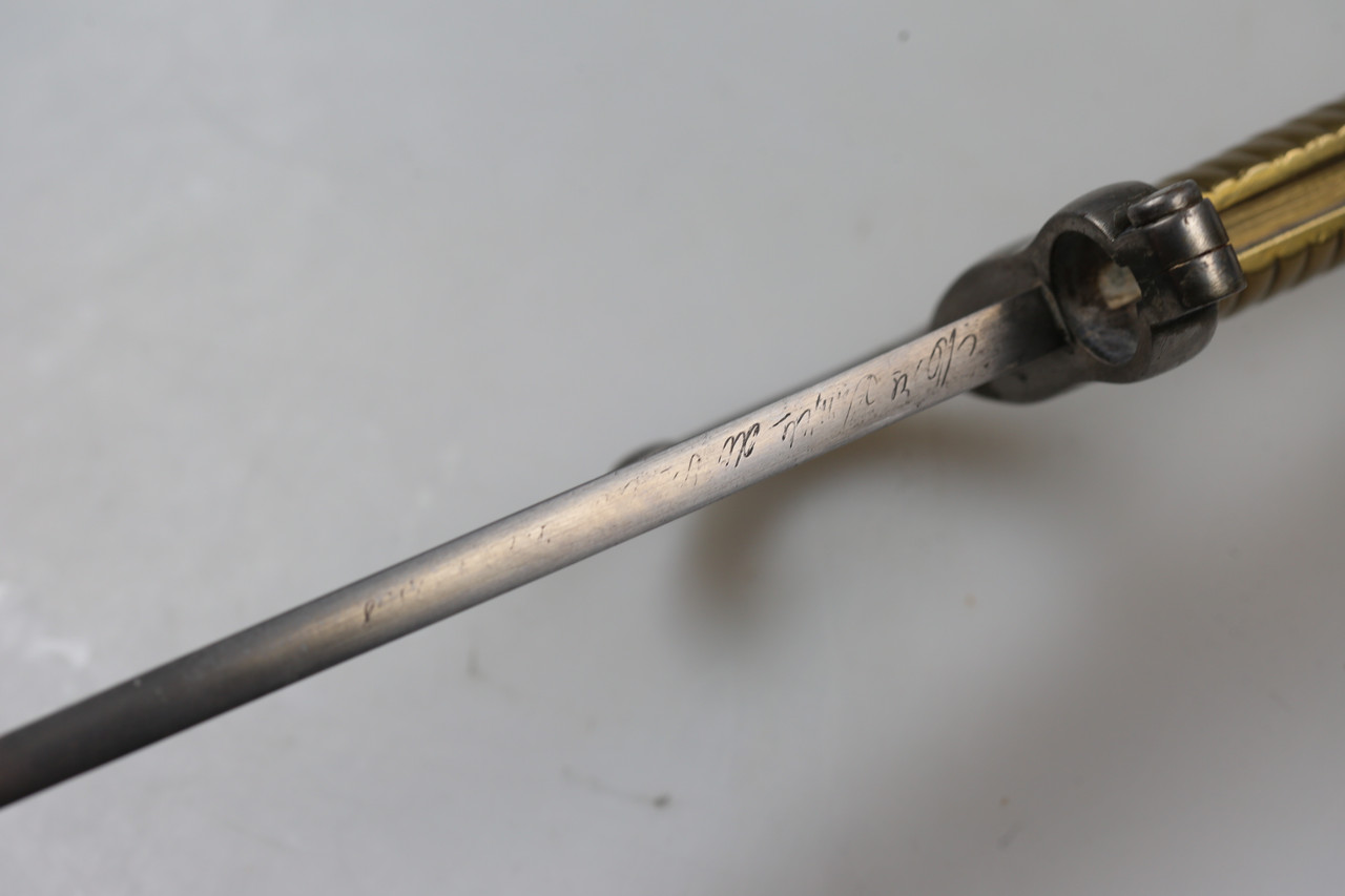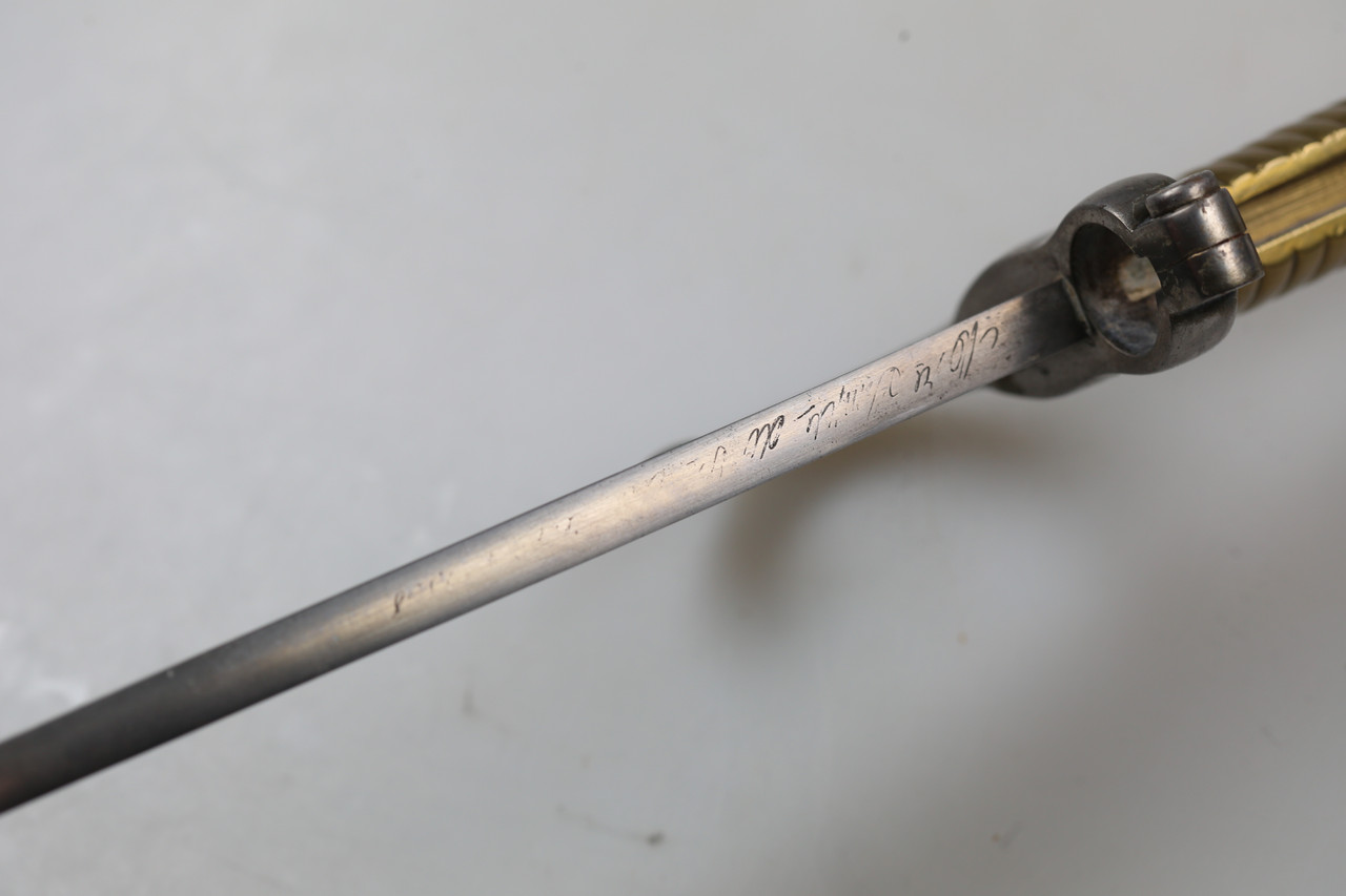 I am offering a French M1866 sabre bayonet. The piece features an engraved blade and is offered without scabbard.