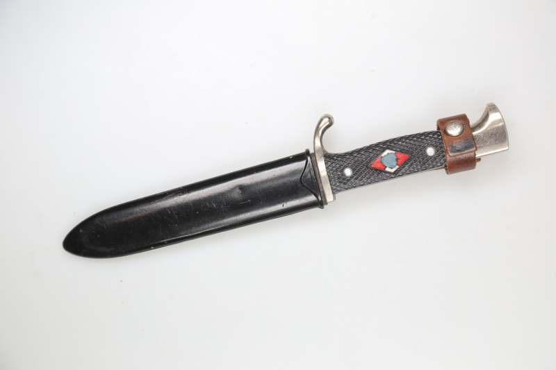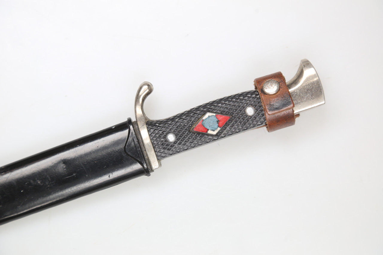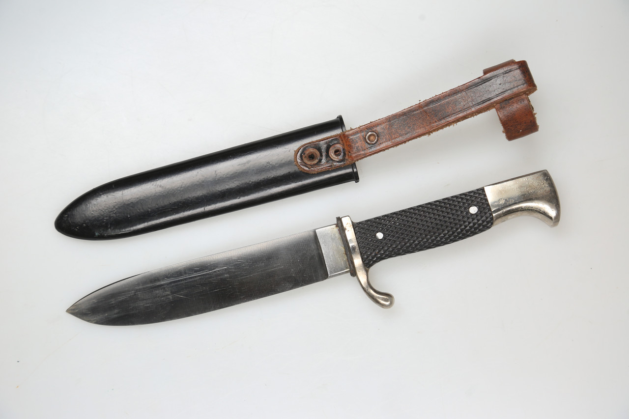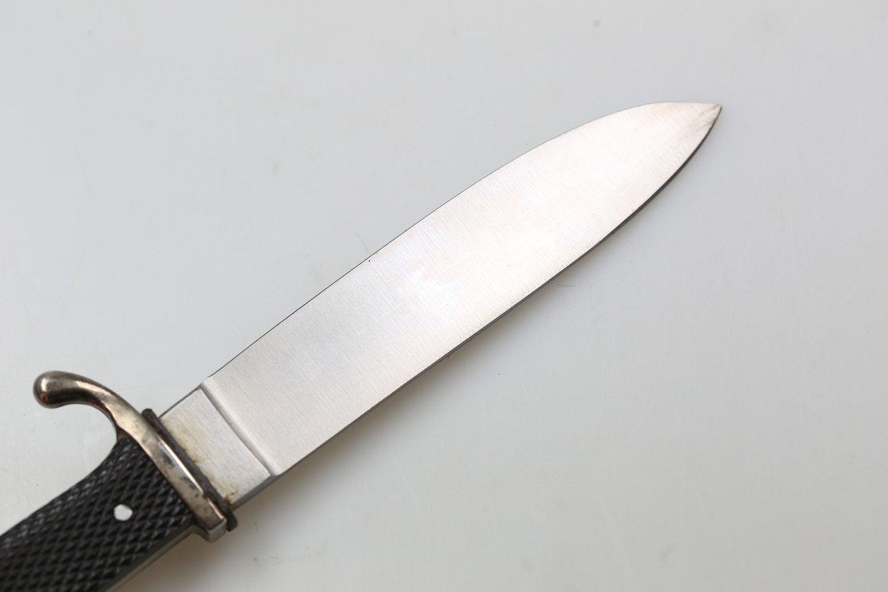 I am offering an HJ-style knife marked RZM M7/49 and dated 1939. The blade bears the motto “Blut und Ehre”.