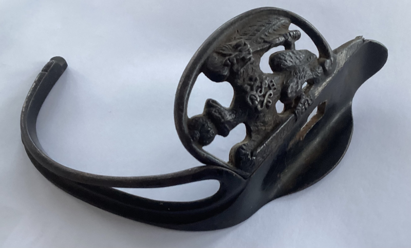 Sehr schönes Griffgefäß für einen preußischen Infanteriedegen. Material magnetisch und geschwärzt.
