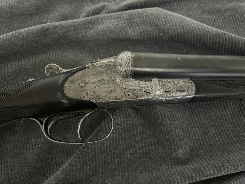 Ich biete hier eine Flinte mit Geschichte an. Sie wurde 1905 gekauft und während des Krieges unter einem Strohhaufen versteckt! Dies wurde Fotodokumentiert. Im Waffenmusseum Suhl befindet sich die älteste Merkelflinte mit Baujahr 1903. Die Flinte hat einen hochwertigen Nimrod Verschluss. Ein solch altes und seltenes Explar sucht seines gleichen. Des Weiteren besitzt die Waffe reiche Verzierungen und Gravuren. Die Doppelflinte ist voll funktionsfähig & schließt hervorragend, ohne Spiel.
