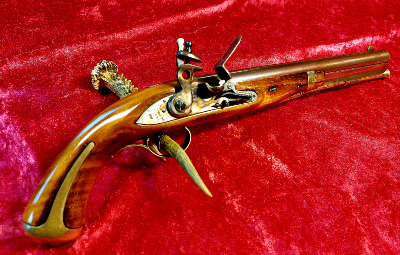 Ich biete eine Steinschloss Pistole im Kal. 58 mit gezogenem Lauf an. Die Waffe ist eine frühe Pedersoli-Fertigung. Die Lauflänge ist ca. 25,5 cm, und die Gesamtlänge der Pistole ist ca. 42,5 cm. Die Funktion des Steinschlosses auf Funkenzündung wurde nicht getestet, da sie bei mir nur eine Vitrinen-Waffe war. Den Zustand der Pistole entnehmen Sie bitte den Bildern, diese sind Bestandteil der Artikelbeschreibung. Privatverkauf. Die Ware wird unter Ausschluss jeglicher Gewährleistung und Sachmängelhaftung verkauft. Keine Rücknahme. NUR INNLANDSVERKAUF !! Altersnachweis erforderlich.
